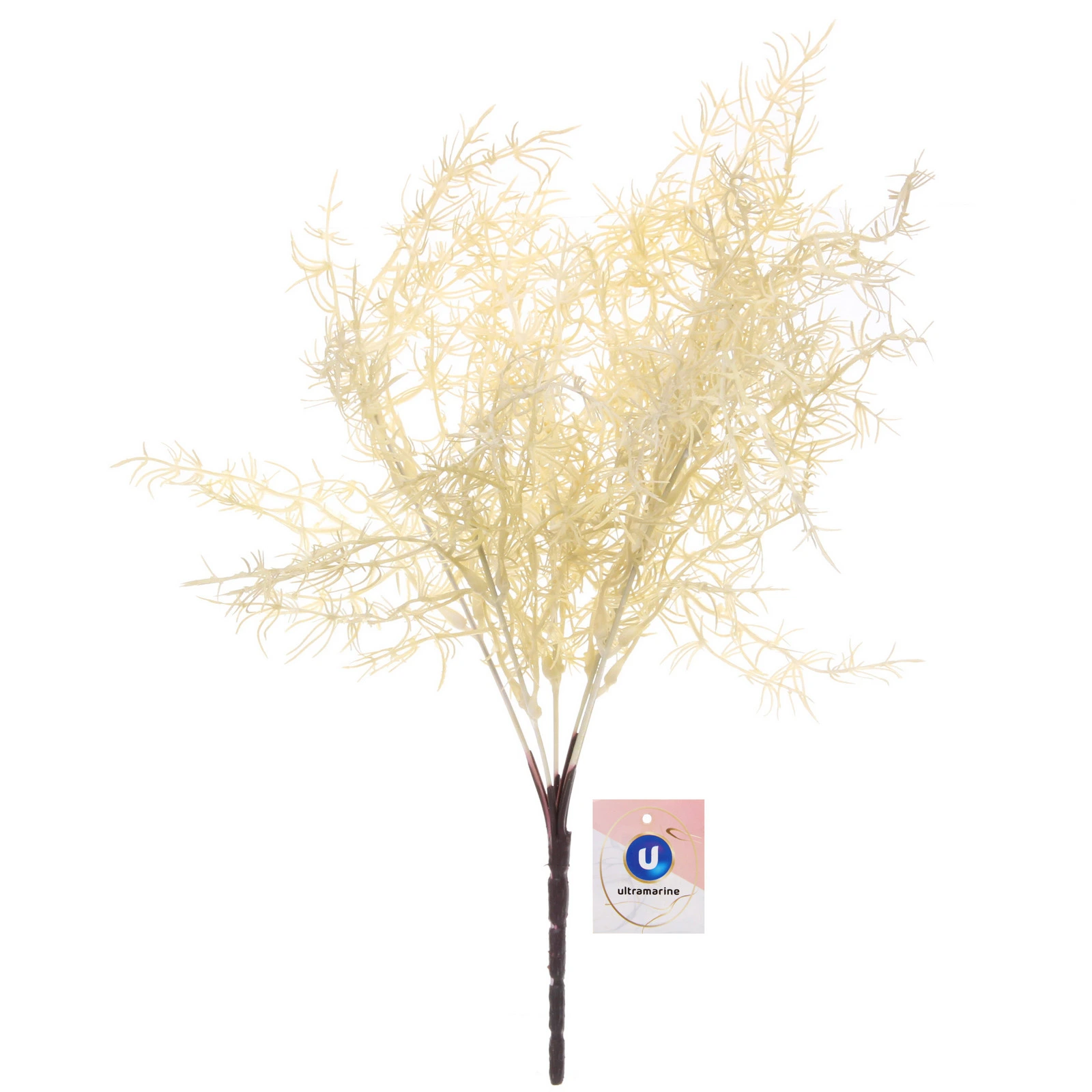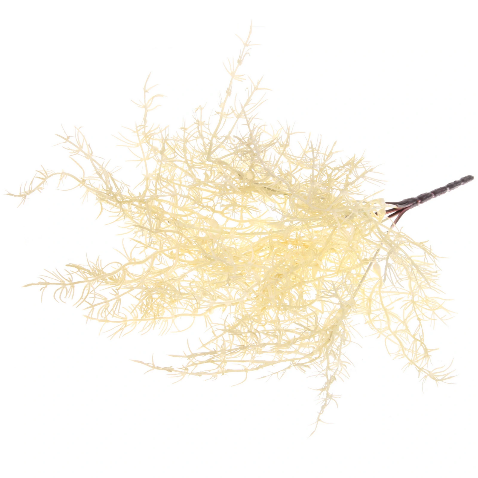 Ветвь имеет высоту 38 см. Она состоит из нескольких стеблей, собранных в общее основание тёмного цвета, что создаёт эффект натурального пучка. Множество тонких, изящно изогнутых ответвлений образуют объёмную и ажурную крону, визуально увеличивая композицию. Цвет — нежный, светлый, близкий к кремово-жёлтому оттенку, который легко сочетается с большинством цветовых палитр в интерьере.