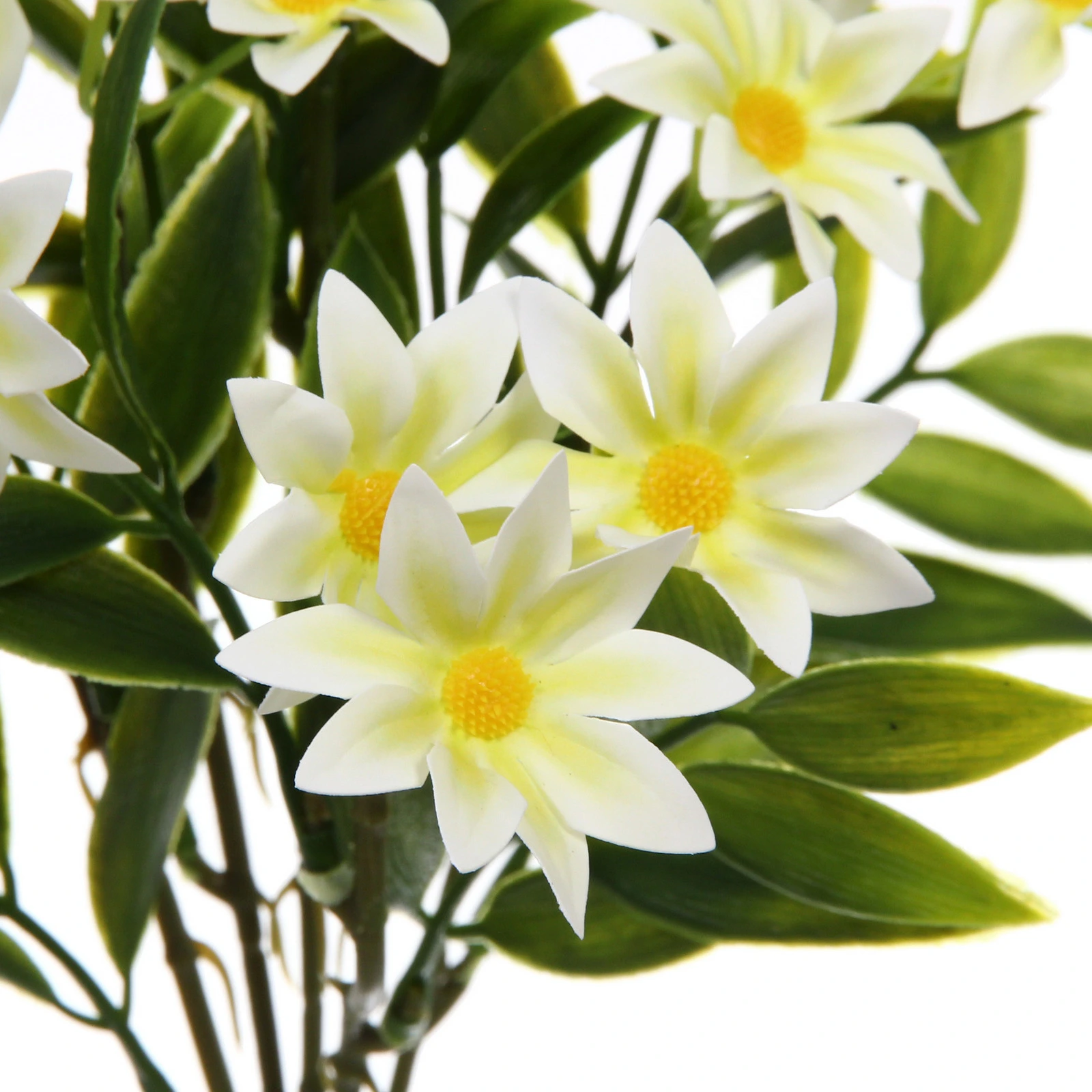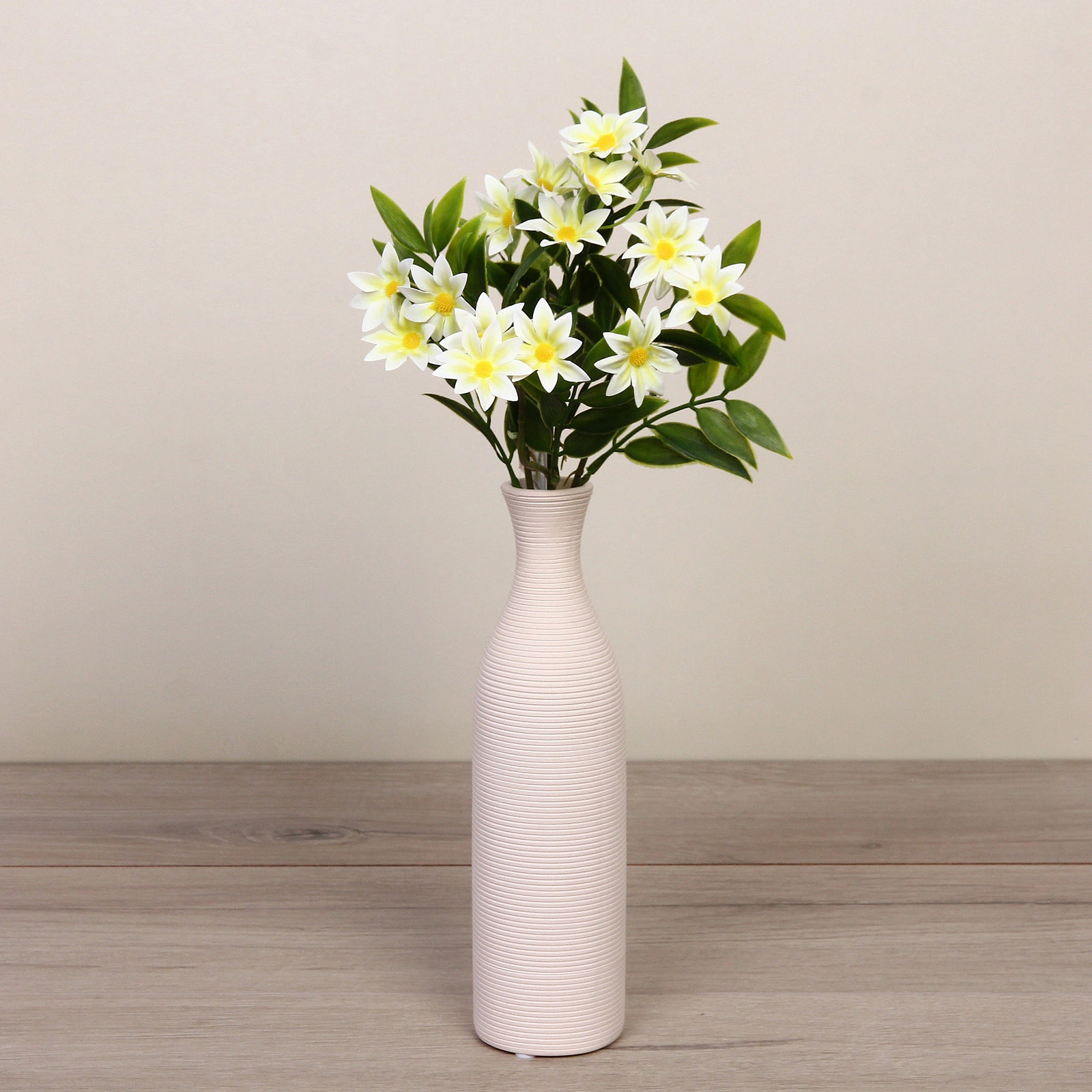- Реалистичность: Каждый цветок тщательно проработан: узкие белые лепестки с легким желтым оттенком у сердцевины и рельефный желтый центр создают иллюзию живого растения.