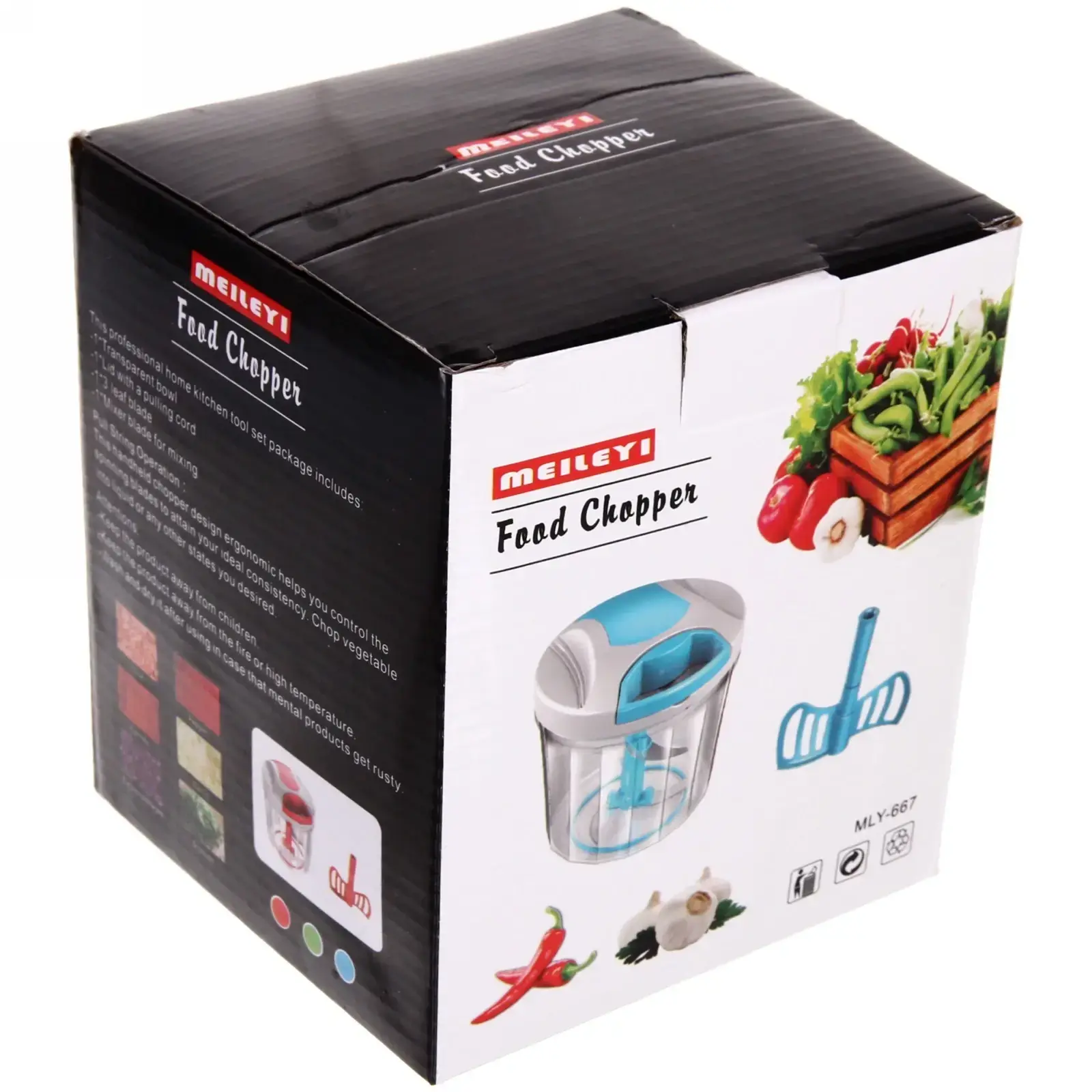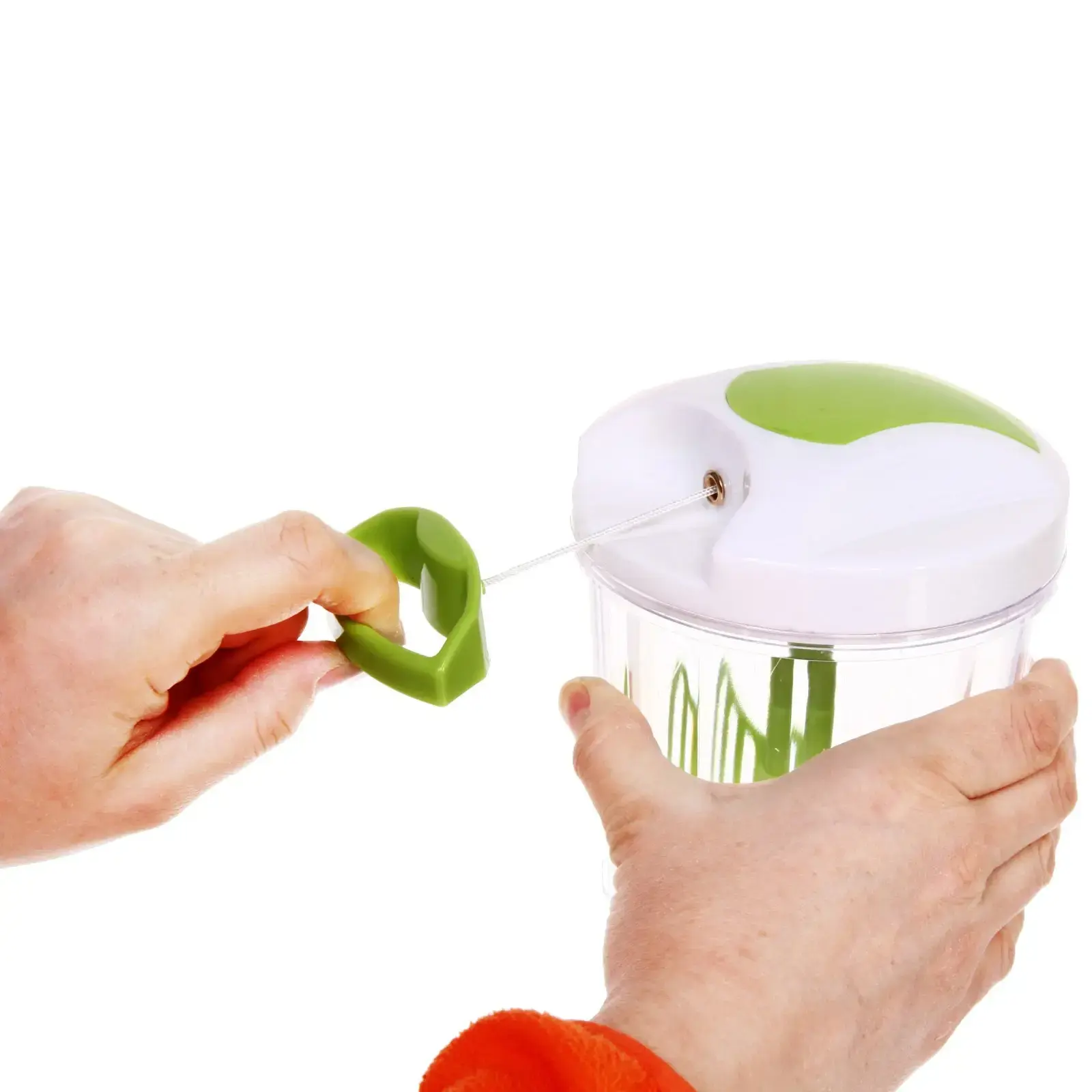 - Потяните за шнур — острые лезвия измельчат продукты за 2-3 движения