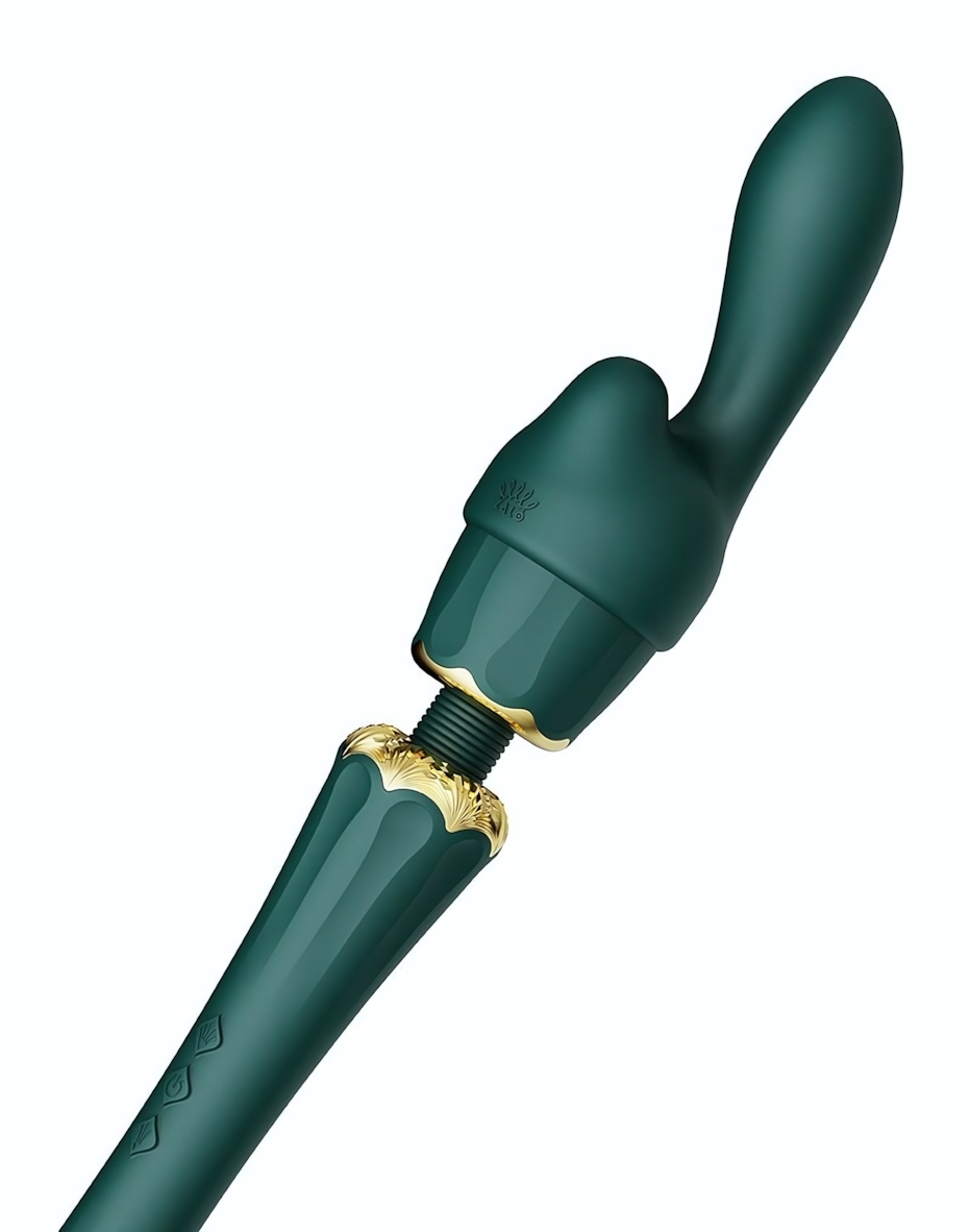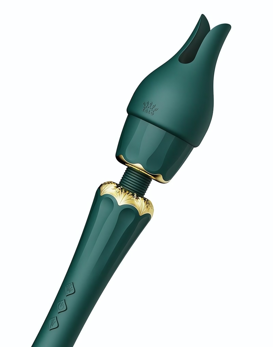 Длина устройства составляет 29.1 см, диаметр — 5.35 см. Изумрудный цвет с декоративными элементами подчеркивает премиальный характер модели. Время полной зарядки — около 2 часов, автономная работа — до 2 часов, что обеспечивает достаточную свободу без частой подзарядки.