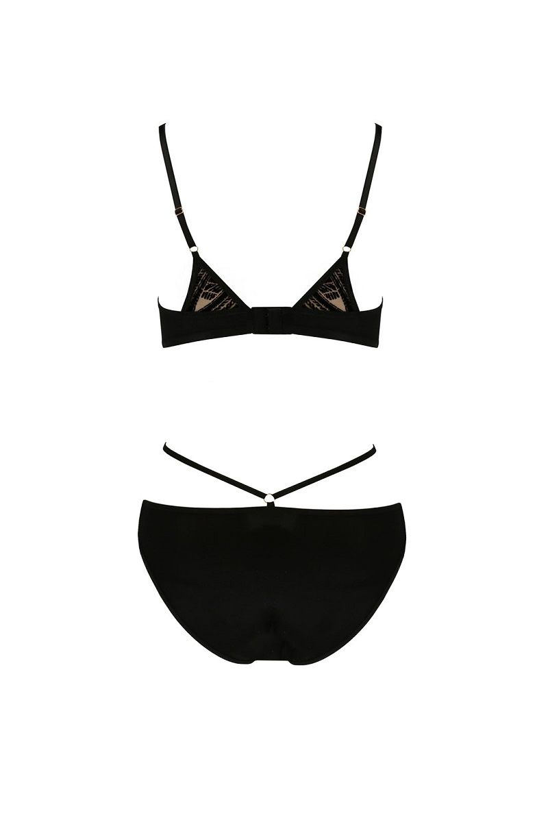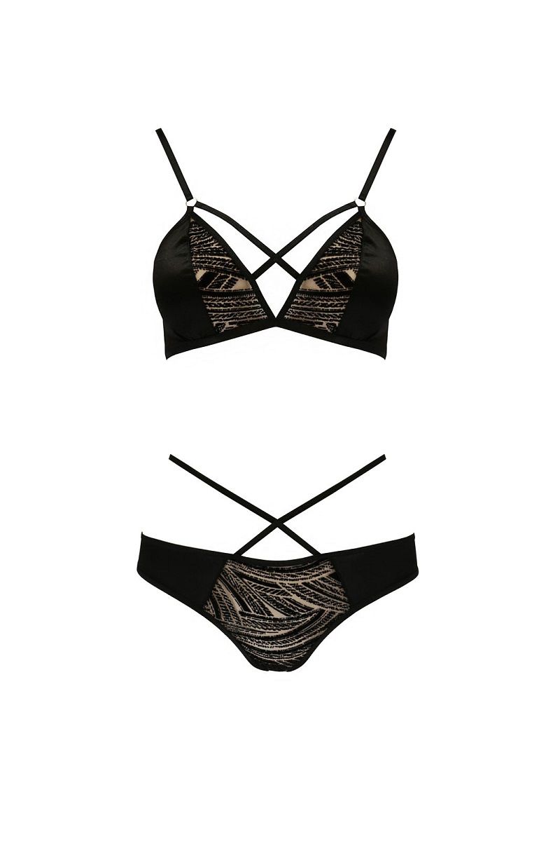Этот изящный комплект создан для тех, кто ценит не только привлекательный внешний вид, но и удобство в носке. Перекрещенные декоративные бретели на бюстгальтере и трусиках создают эффектный силуэт, подчеркивая достоинства фигуры, а продуманный крой обеспечивает идеальную посадку.