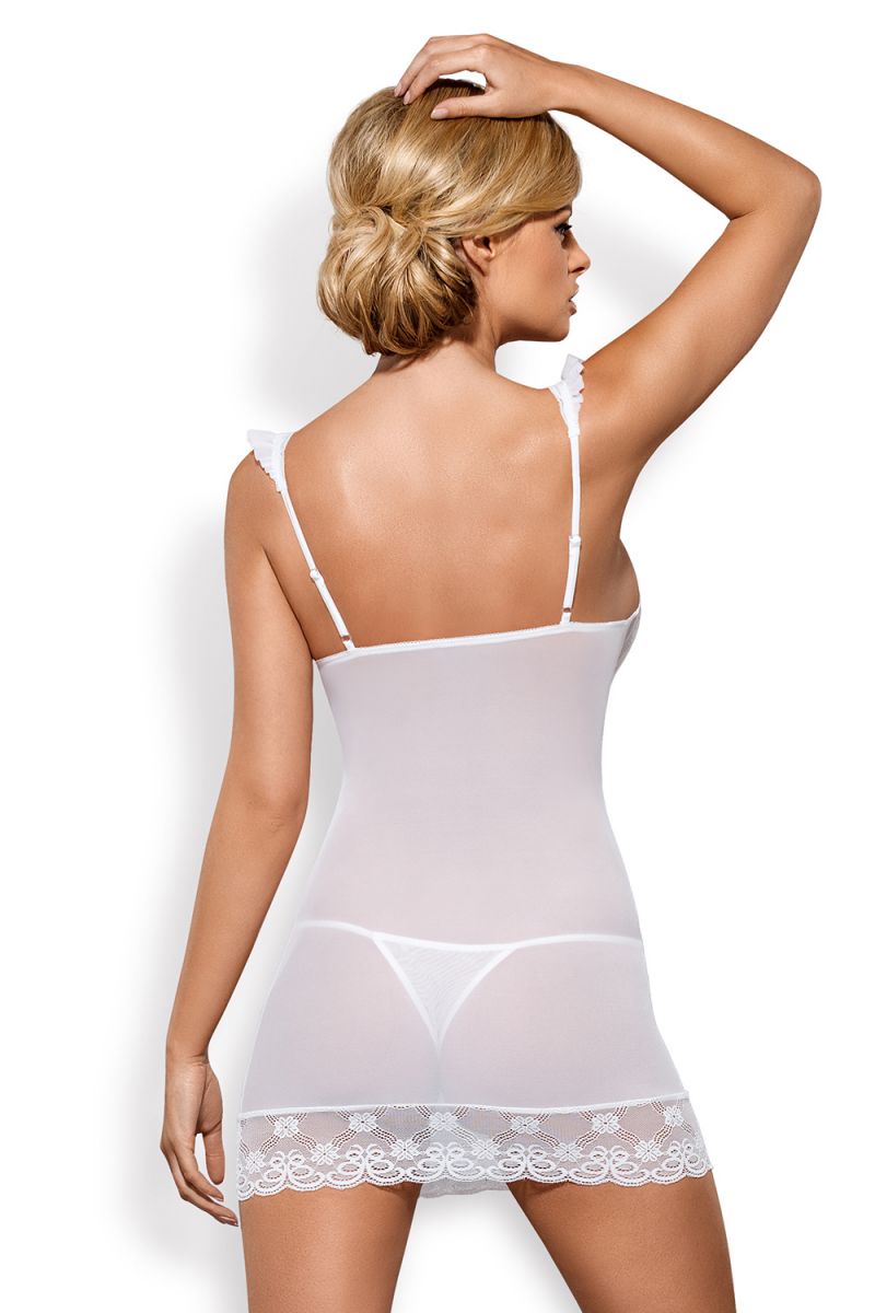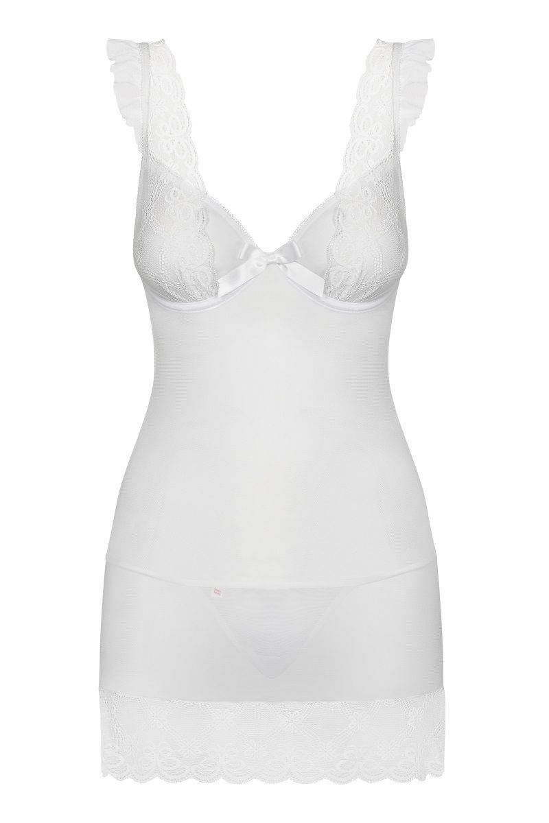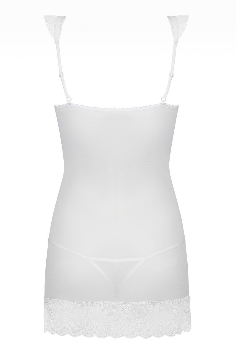 белая сорочка "julitta" превращает обычный вечер в романтическое событие. полупрозрачный полиамид мягко облегает тело, а кружевные крылышки на бретелях добавляют игривый акцент. в комплекте идут стринги, которые завершают соблазнительный ансамбль.