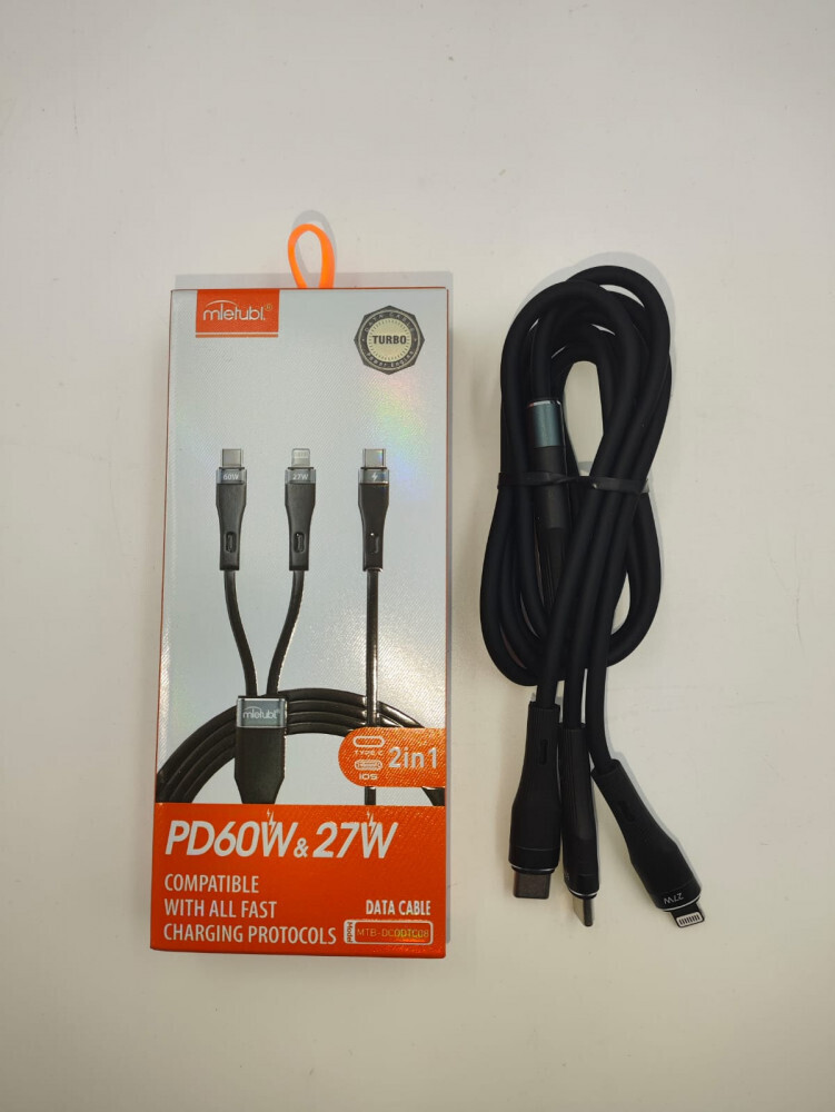 Кабель 2-в-1 Mietubl Type-C/Lightning, PD60W+27W, 1.2м, черный