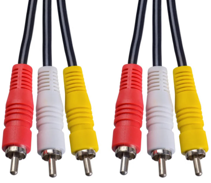 Цветовая маркировка разъемов (красный, белый, желтый) исключает ошибки при подключении. Металлические контакты обеспечивают надежное соединение, а прочная внешняя оболочка защищает от повреждений.