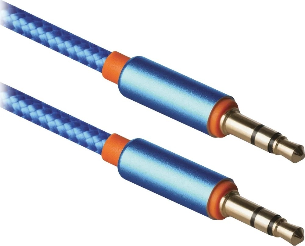 Кабель AUX DENMEN DX05 2м, синий, тканевая оплетка, разъемы 3.5 мм