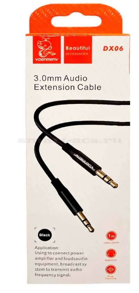 Аудиокабель AUX «DX06» 1м, чёрный, позолоченные коннекторы для чистого звука