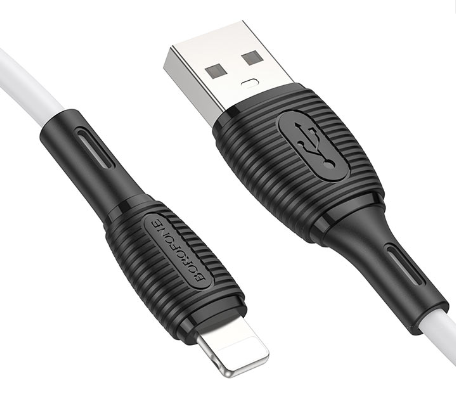 Кабель USB-Lightning «BX86» для быстрой зарядки 2.4А, силиконовый, белый, 1м