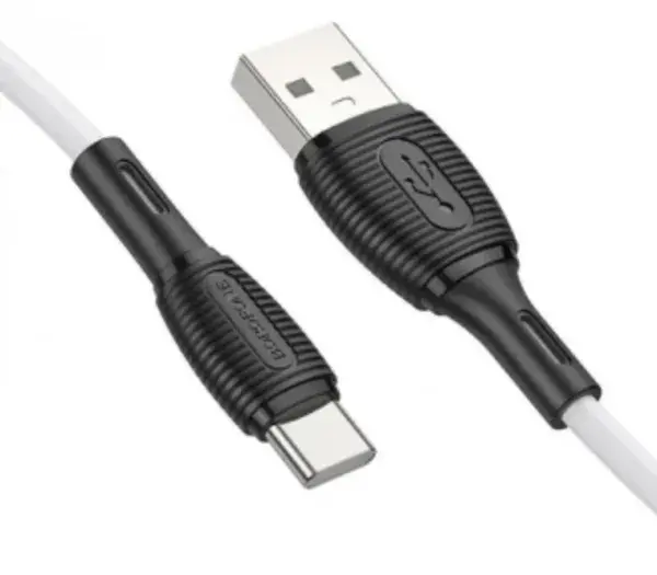 Кабель USB-Type-C Borofone BX86, быстрая зарядка 3А, силиконовый, белый, 1м