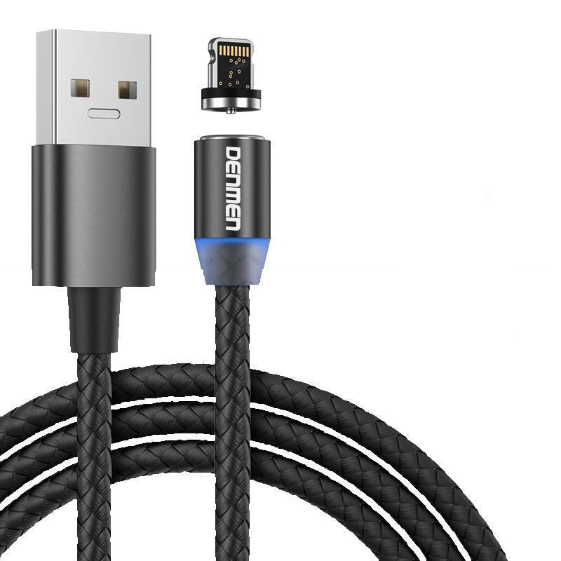 Кабель DENMEN D09L USB-Lightning, магнитный, 1м, Nylon черный