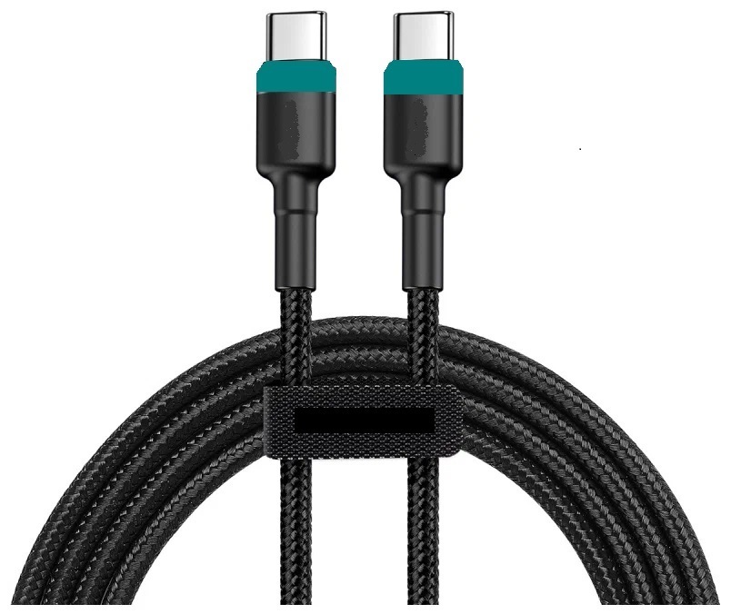 Кабель Type-C-Type-C 100W, нейлоновая оплетка, зеленый/черный, 1м