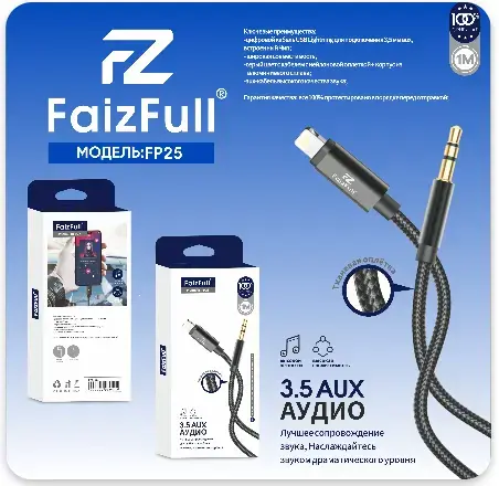 Этот кабель создан для тех, кто ценит качественное звучание и надёжность подключения. Модель FP25 обеспечивает стабильную передачу аудиосигнала, позволяя без потери качества подключать устройства с разъёмом Lightning к любой акустике или AUX-входу с 3.5 мм джеком. Благодаря прочной тканевой оплётке кабель не путается и устойчив к износу, что делает его долговечным аксессуаром для ежедневного использования.