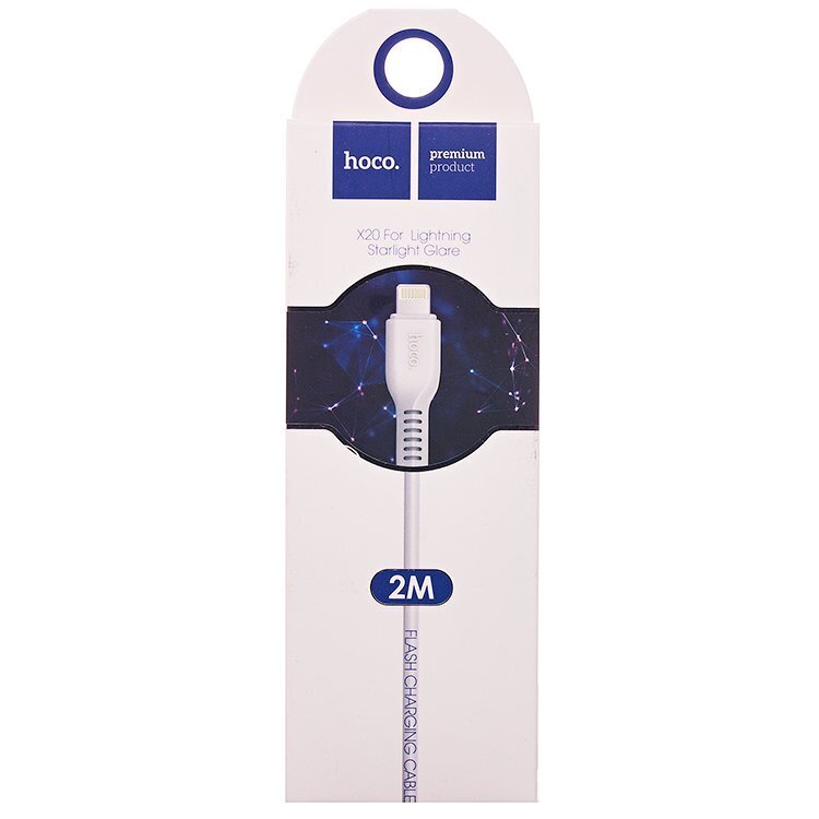 Кабель USB-Lightning «X20» 2м, белый, PVC, быстрая зарядка 2А, прочный