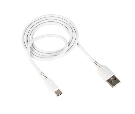 Кабель USB WALKER "C308", Type-C, быстрая зарядка 2.4А с QC, белый, гибкий