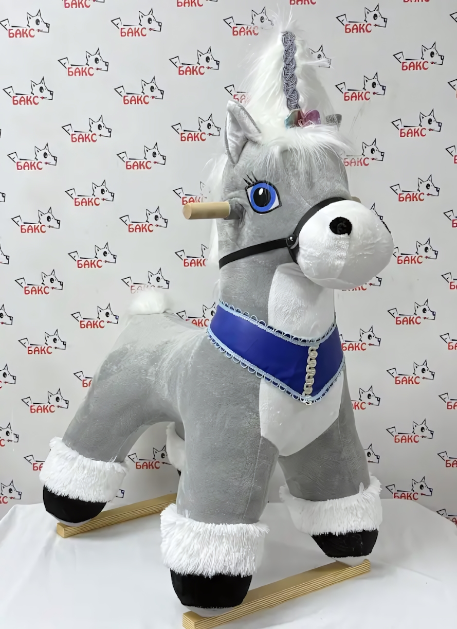 Корпус лошадки обтянут качественным искусственным мехом серого цвета, который приятен к телу и долговечен. Внутреннее наполнение из поролона и синтепона делает сиденье мягким и комфортным даже при длительных «путешествиях». Игрушка дополнена стильными декоративными элементами: нарядным нагрудником и реалистичной уздечкой.