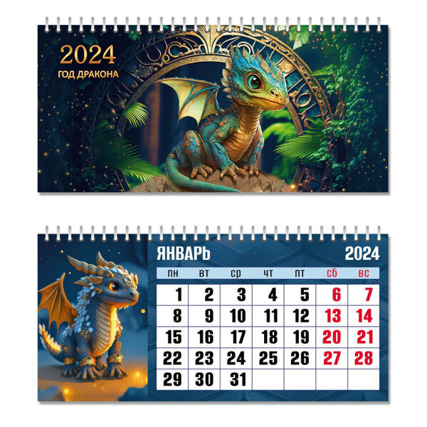 Календарь домик горизонтальный 2024: символ года «Дракон-Изящный»