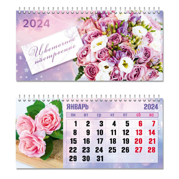 Выбирая календарь 'Цветочное настроение', вы получаете не только практичный инструмент для планирования, но и стильный элемент интерьера. Цветочная композиция из розовых и белых цветов, дополненная зелеными листьями, создает атмосферу свежести и радости. Календарь выделяется своей светлой пастельной гаммой, что делает его универсальным для любого стиля оформления.