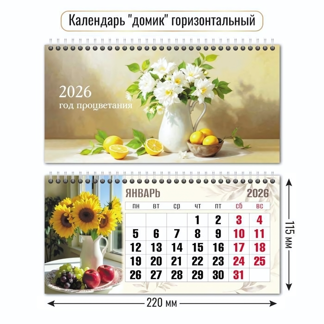 Календарь-домик горизонтальный 2026, натюрморт, 220х115мм, бумага