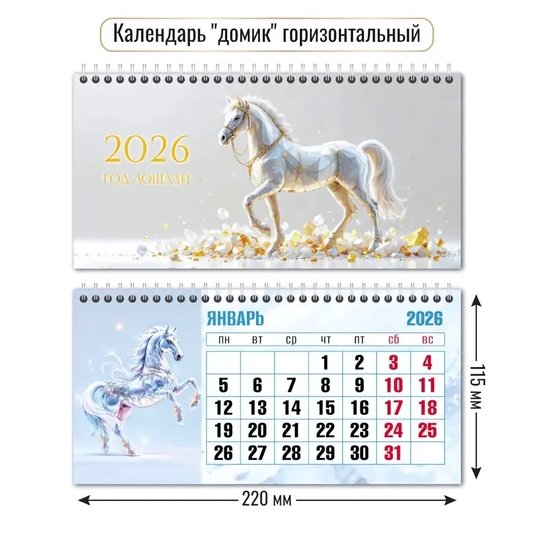 Календарь-домик горизонтальный 2026 года с изображением лошади