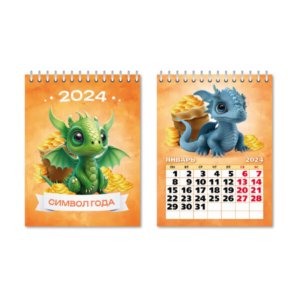 Почему стоит выбрать именно этот календарь? Во-первых, его яркий и привлекательный дизайн с изображением зелёного и синего дракона на фоне золотых монет не оставит равнодушным никого. Во-вторых, календарь имеет спиральное соединение, что обеспечивает легкость в перелистывании страниц. Даты выделены красным цветом для удобства, а дни недели указаны на русском языке, что делает его использование ещё более простым и понятным.