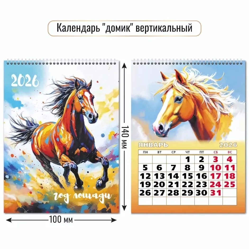 Настенный календарь-домик 2026 с изображением символа года – ретивого Коня станет не только функциональным помощником в планировании времени, но и стильным украшением вашего интерьера.