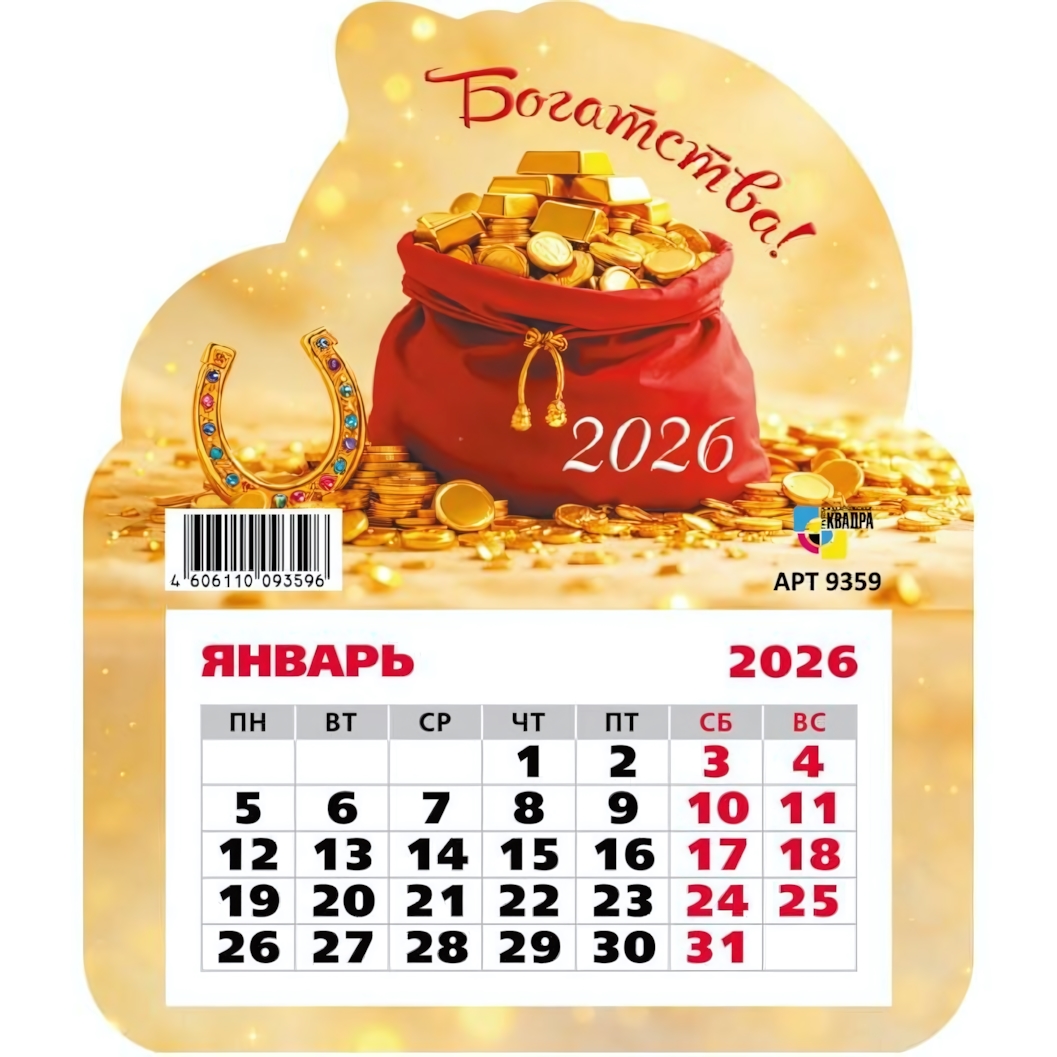 Календарь фигурный на магните 'Богатства' 2026, серия 'Квадра', размер 15х15см