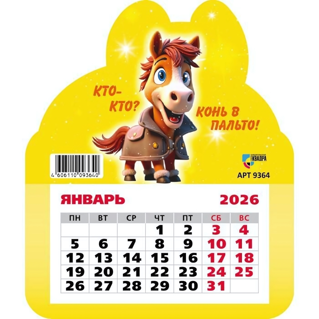 Начните год с улыбки вместе с нашим красочным календарем. Милый конь в пальто создаст радостное настроение каждый день.