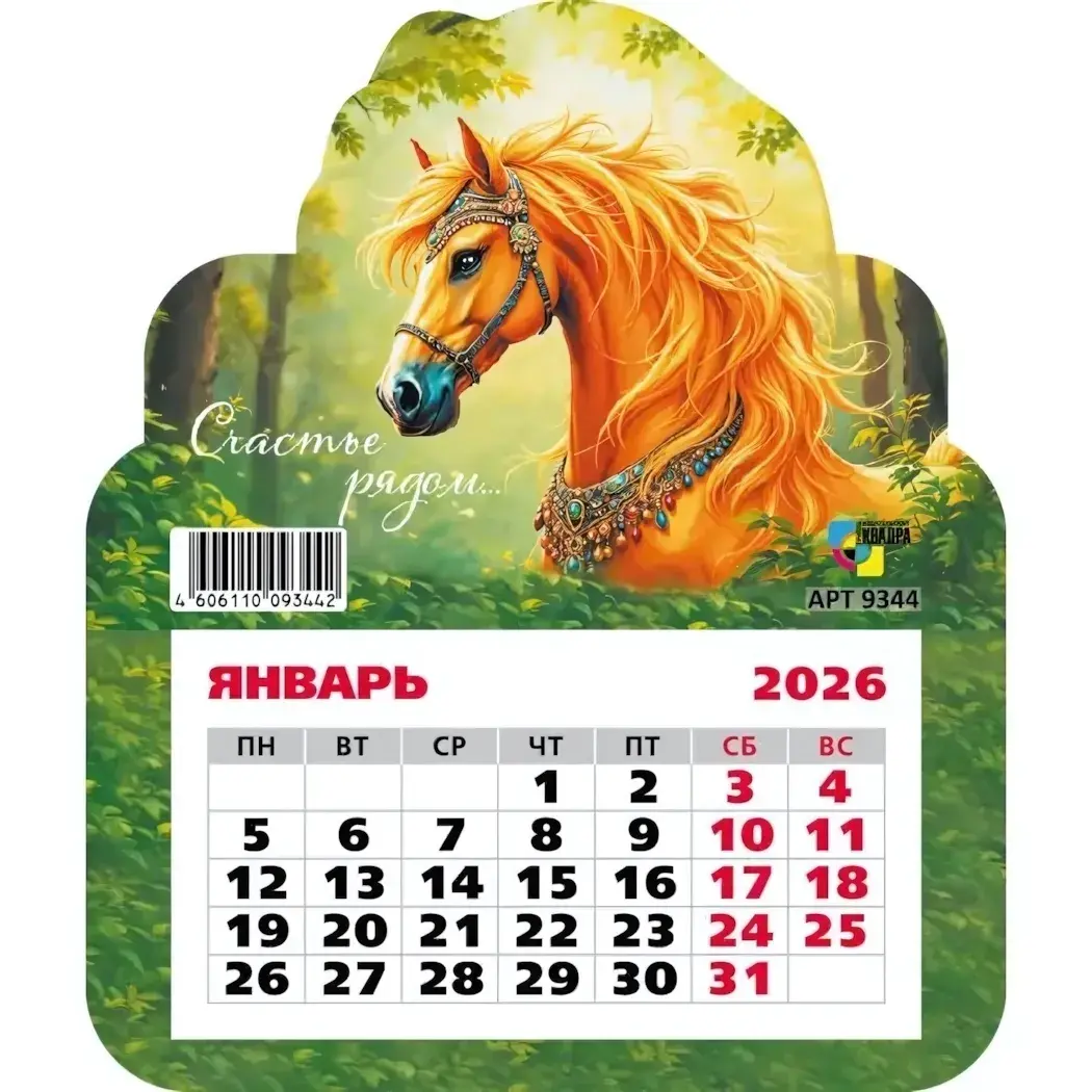 Каждый день начинается с улыбки, когда на стене появляется фигурный магнитный календарь «счастье рядом». Оригинальная форма и живописная лошадь в золотистой гриве создают атмосферу уюта и положительной энергии, а магнитное основание позволяет легко менять расположение без следов от гвоздей.