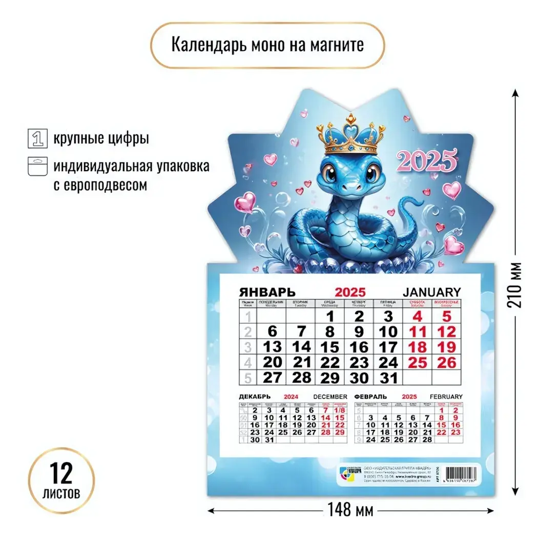 Представляем вашему вниманию уникальный календарь на магните 2025 года с изображением символа года — Змеи с сердечками. Этот календарь не только поможет вам организовать свое время, но и станет стильным элементом декора вашего дома или офиса. Его яркий дизайн и практичность делают его идеальным выбором для всех, кто ценит комфорт и эстетику.
