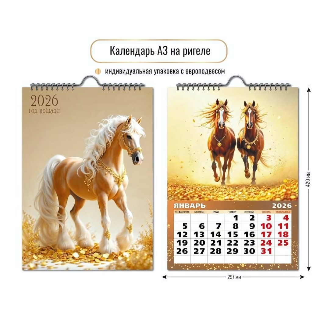 Этот стильный календарь на ригеле станет вашим надежным помощником в планировании дел на 2026 год. Уникальный дизайн символа года и продуманная структура – идеальное сочетание эстетики и функциональности.