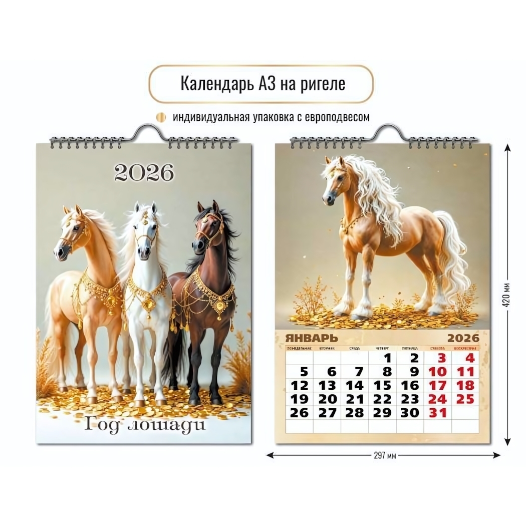Календарь настенный 'Год лошади 2026', А3, бумага, разноцветный принт