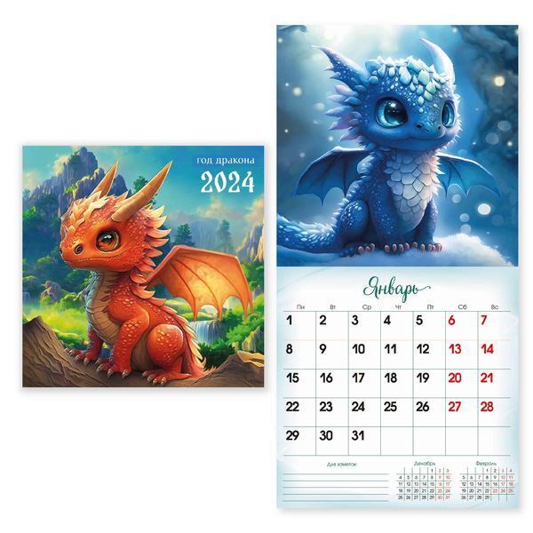 Погрузитесь в атмосферу волшебства и удачи с календарем на 2024 год, который станет не только практичным помощником, но и стильным элементом декора вашего дома или офиса. Яркие иллюстрации драконов, символизирующих силу и удачу, добавят позитивной энергии в каждый ваш день.
