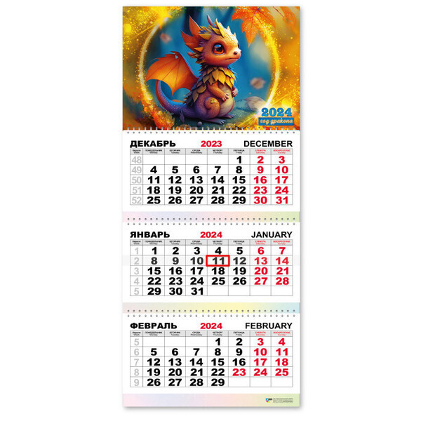 Погрузитесь в атмосферу волшебства и удачи с квартальным календарем на 2024 год, который станет не только практичным помощником в планировании, но и стильным элементом декора вашего дома или офиса. Этот календарь с изображением дракона, символизирующего силу и удачу, добавит яркие акценты в ваше пространство и поможет вам организовать свое время с комфортом.