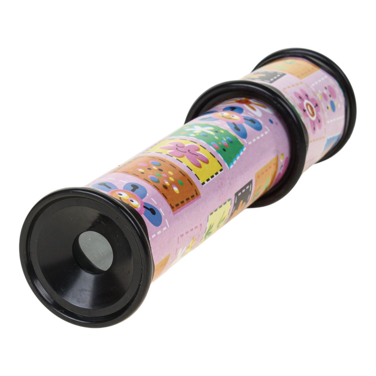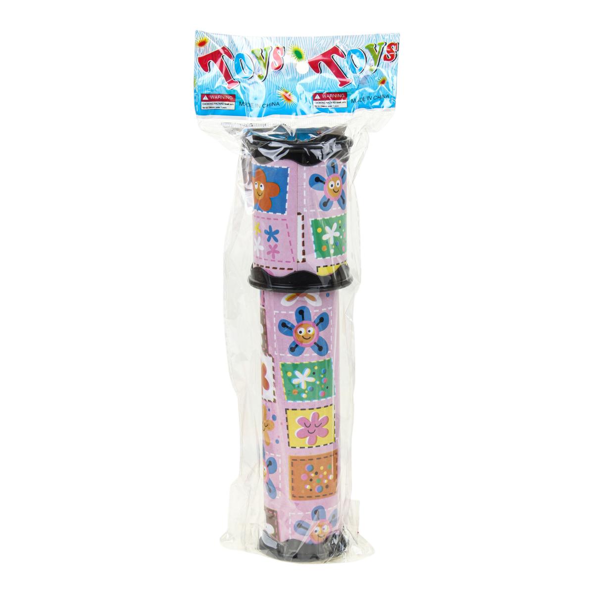 Длина калейдоскопа — 20 см, его удобно держать в детской руке. Корпус выполнен из пластмассы, лёгкий и комфортный в использовании. Розовое оформление с яркими элементами делает игрушку привлекательной и заметной среди других развлечений. Калейдоскоп станет отличным дополнением к детским играм и приятным сюрпризом для маленьких выдумщиков и фантазёров.