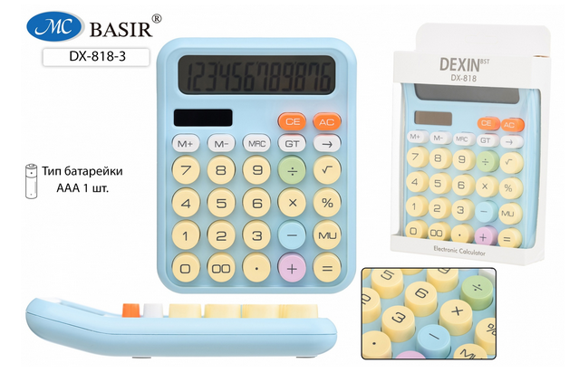 Калькулятор Basir DX-818-3 — практичный помощник для быстрых и точных расчетов. Компактный формат и продуманная эргономика делают его удобным для ежедневного использования в офисе, школе или дома. Яркие разноцветные кнопки помогают легко ориентироваться в функциях и снижают нагрузку на глаза при длительной работе.