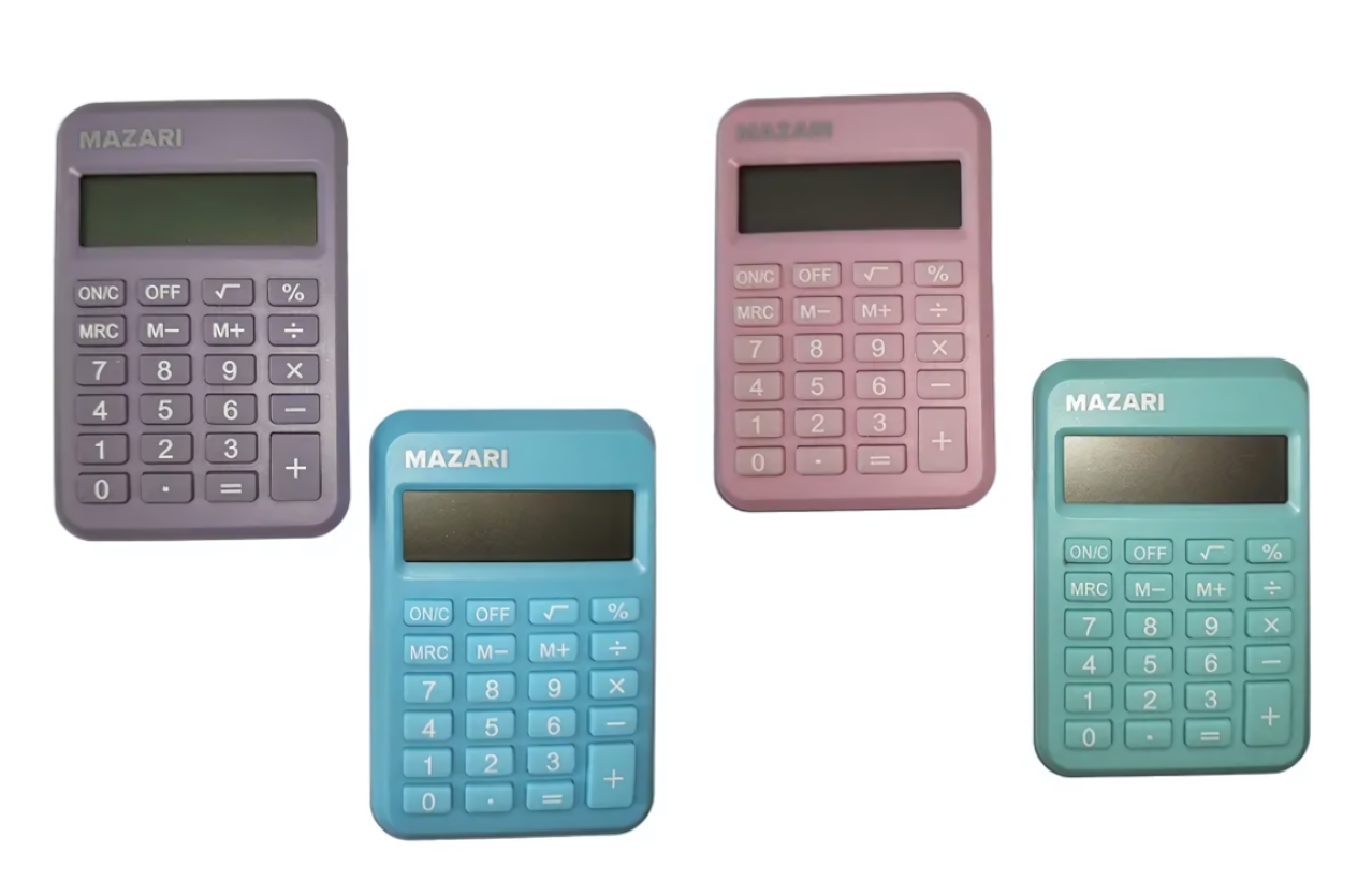 Идеальное сочетание надёжности и удобства – 8‑разрядный калькулятор mazari с встроенной батареей AG10, который всегда под рукой и готов к работе. Его небольшие размеры позволяют разместить устройство в любой сумке, кармане или даже в наборе ключей.