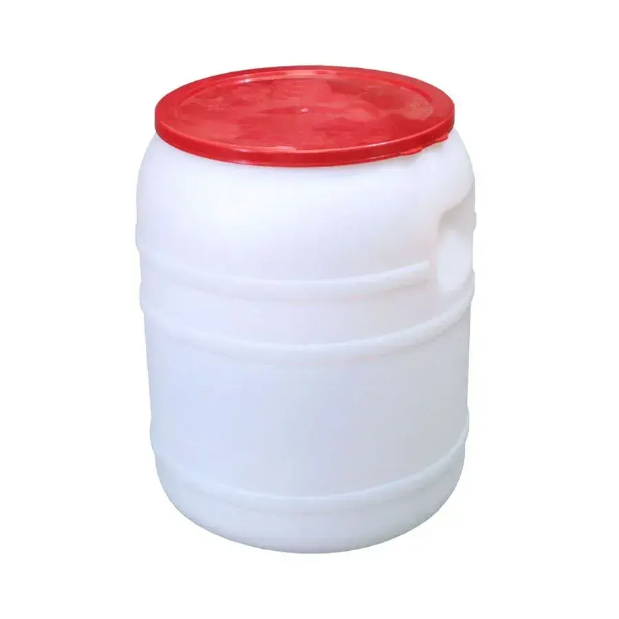 Канистра пластиковая, бочка 45 л, диаметр горла 250 мм, комплект 4 штуки, белая с красной крышкой