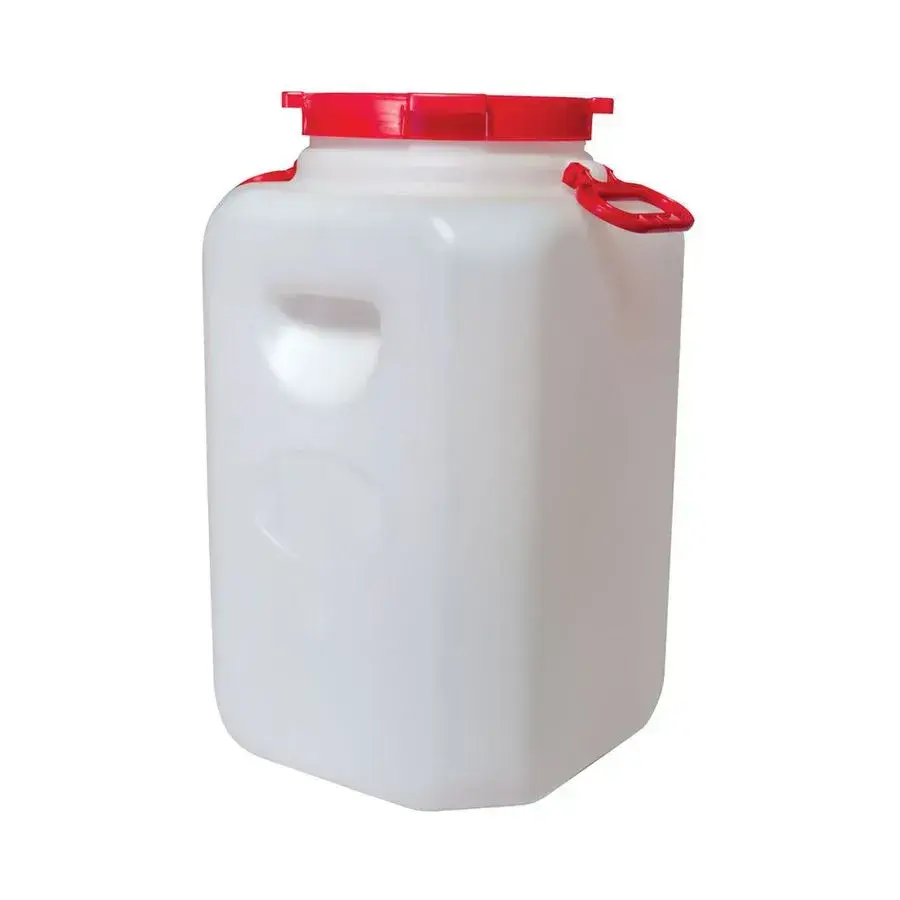 Пластиковая канистра 50 л с навесной ручкой, горловина 215 мм, белый корпус/красная крышка, комплект 4 шт