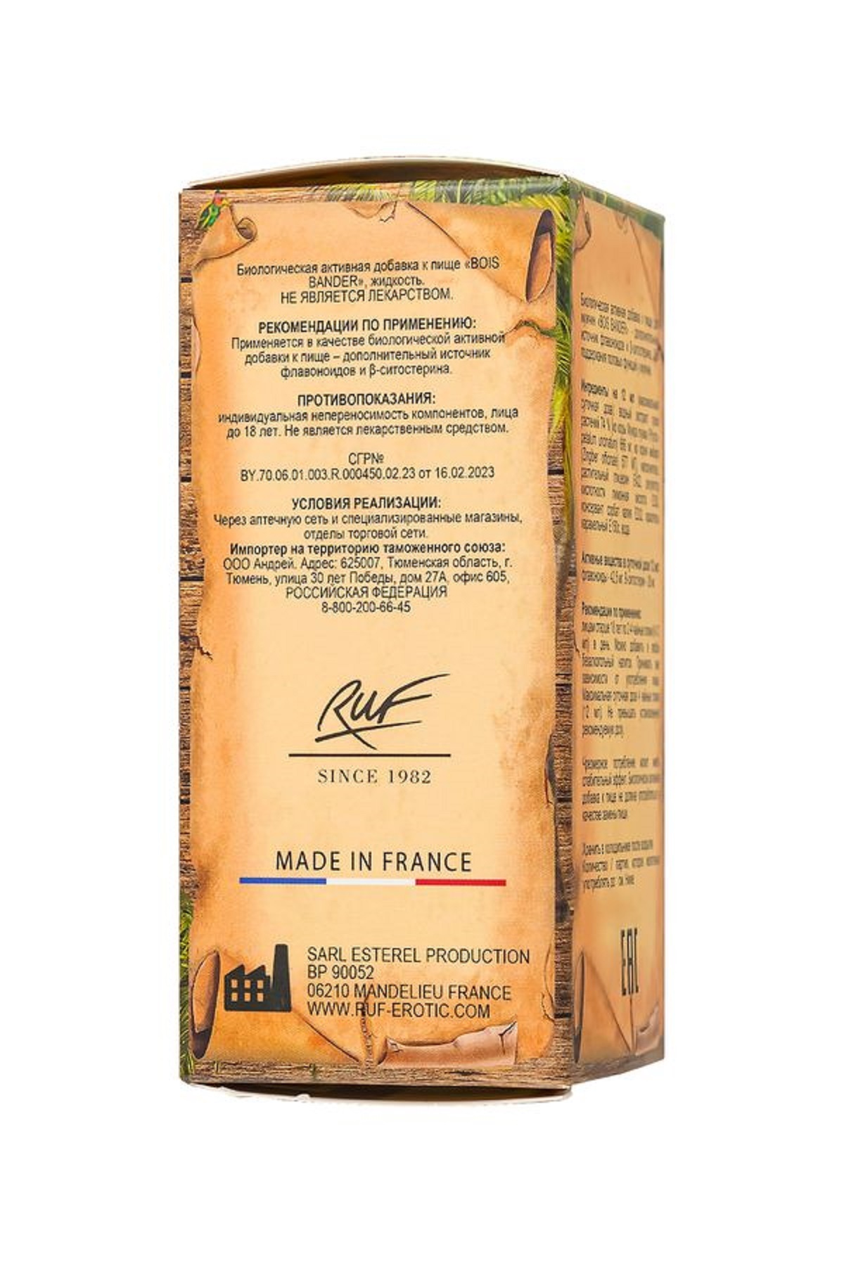 Обеспечьте яркую сексуальную жизнь с помощью капель RUF Bois Bander — эффективной пищевой добавки для мужчин. Эти капли созданы для поддержки и повышения либидо, а также для обеспечения стойкой эрекции и уверенности в каждом моменте. Продукт подойдет для взрослых мужчин, желающих улучшить свою сексуальную активность и качество интимных отношений. Внутри бутылки содержится натуральная формула из экстракта муира пуама и имбиря, которая способствует улучшению кровотока и повышению чувствительности.