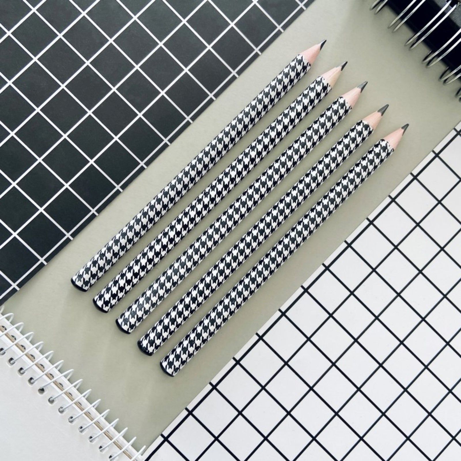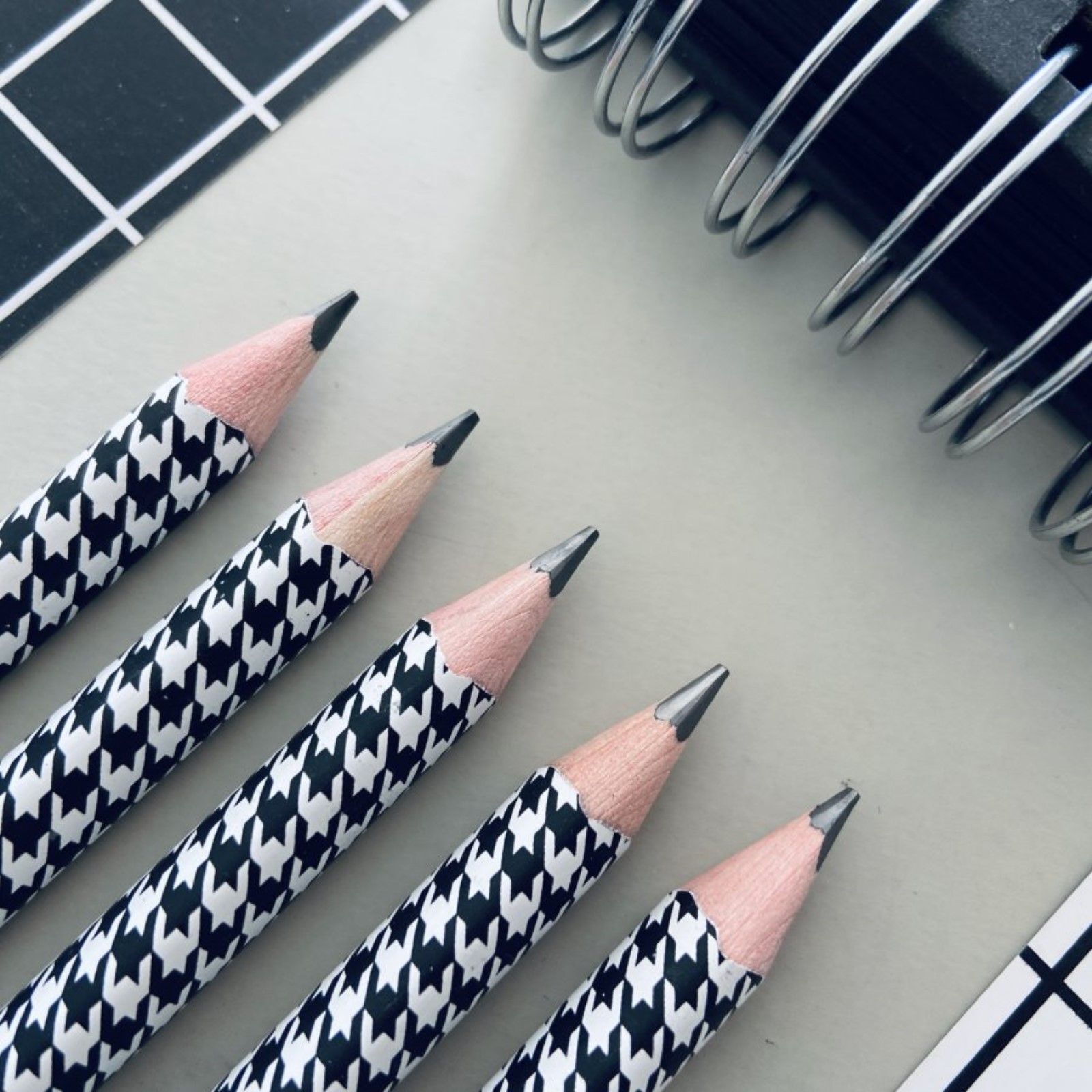 - Геометрический узор в стиле «гусиная лапка» — стильный акцент рабочего стола