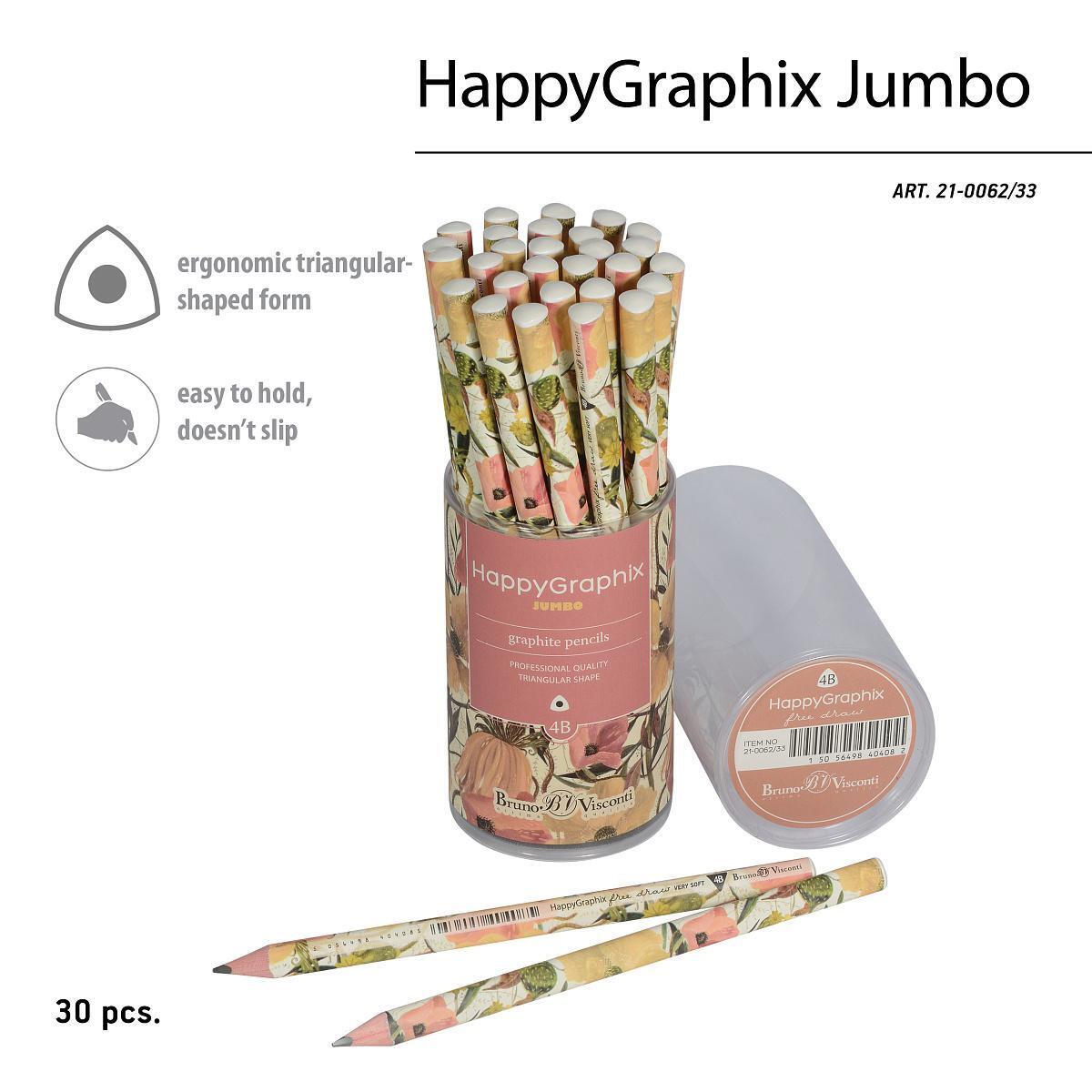 Карандаш "HappyGraphix" идеально подходит для рисования, черчения и создания художественных работ. Его трехгранная форма и увеличенный диаметр обеспечивают удобный захват, что снижает напряжение кисти во время длительной работы. Благодаря этому карандашу вы сможете рисовать с комфортом и удовольствием.