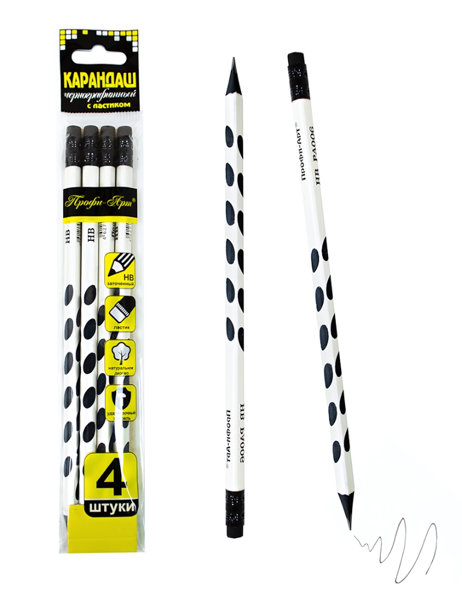 Карандаш ч/г HB "Черная точка" трехгран,заточенный, c ластиком, дерево РА006 (Профи-Арт)