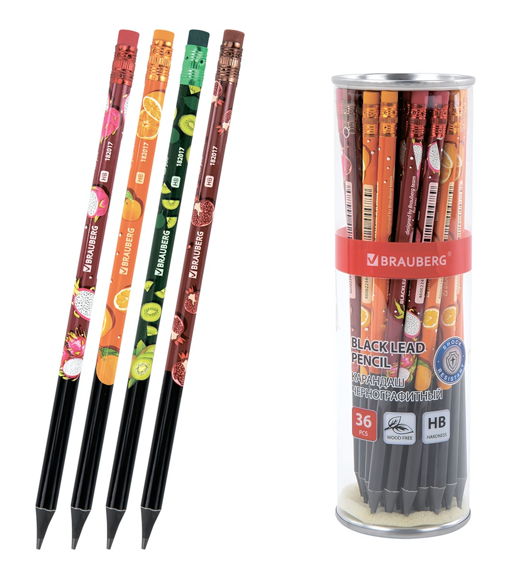 Чернографитный карандаш HB BRAUBERG "Juicy fruit" — практичный инструмент для аккуратных записей, чертежей и рисунков. Средняя твердость грифеля обеспечивает четкую, насыщенную линию без лишнего нажима, что делает письмо комфортным даже при длительном использовании.