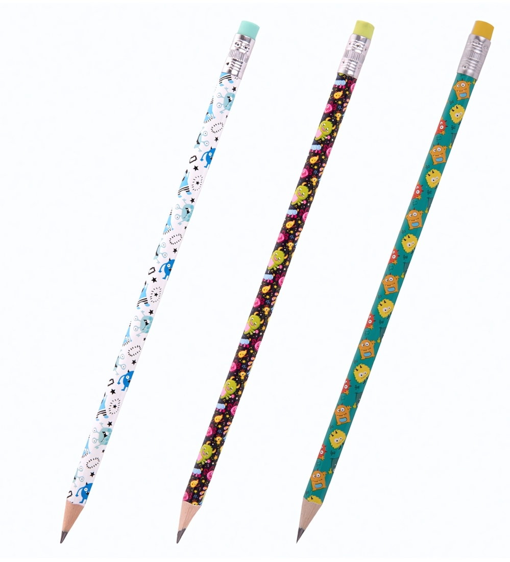 Важно: цвет корпуса определяется случайным образом из доступного ассортимента. Каждый карандаш имеет индивидуальный дизайн с различными забавными персонажами.