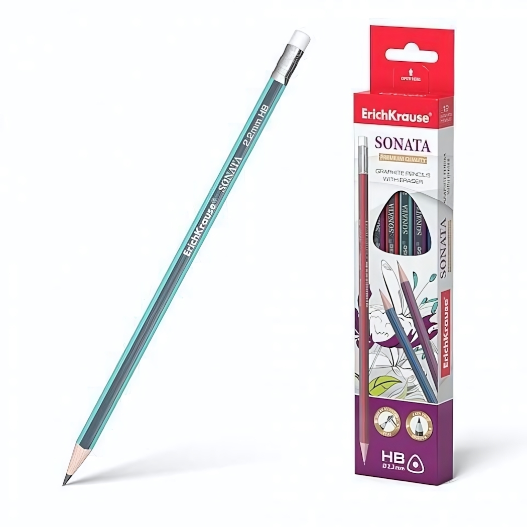 Карандаш чернографитный ErichKrause «Sonata» HB, трехгранный, с ластиком, 2.2 мм, голубой/красный
