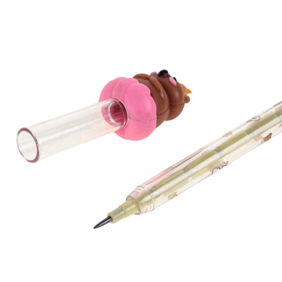Карандаши имеют стандартную длину, удобную для письма. Верхушка выполнена из мягкого материала (предположительно, резины или силикона), что обеспечивает комфортное использование в качестве антистресс-аксессуара. Прозрачный корпус украшен внутренним рисунком с изображением очаровательных медвежат.