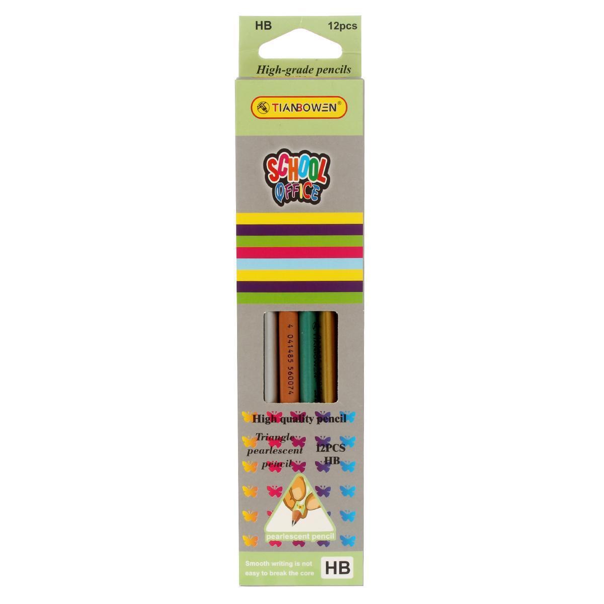 Карандаш чернографитный Metallic HB, трехгранный, с ластиком, перламутровый, микс 4 цвета