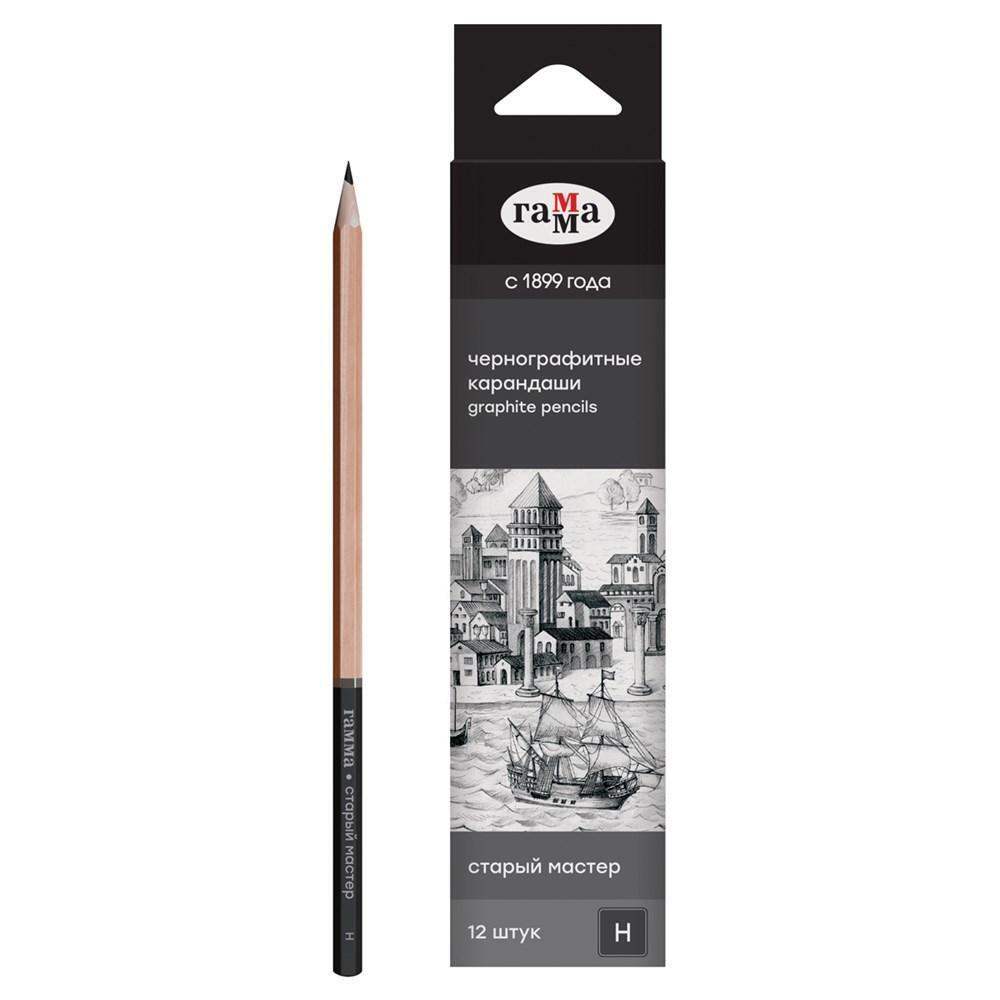 Карандаш чернографитный 'Старый мастер' H, диаметр грифеля 2мм, длина 177мм