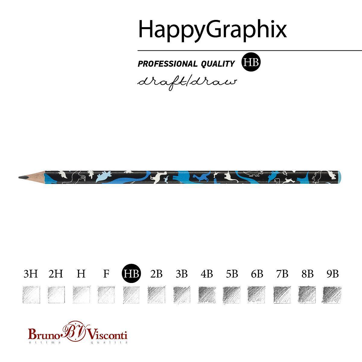 Карандаш графитный Bruno Visconti HappyGraphix HB, для рисования, чернографитный, "Сказочные животные. Динозаврики"