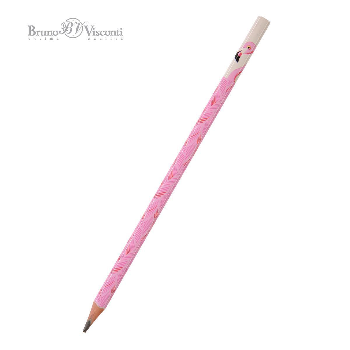 Карандаш чернографитный Bruno Visconti "ArtGraphix Fun. Фламинго", пластиковый корпус, HB, розовый, с рисунком