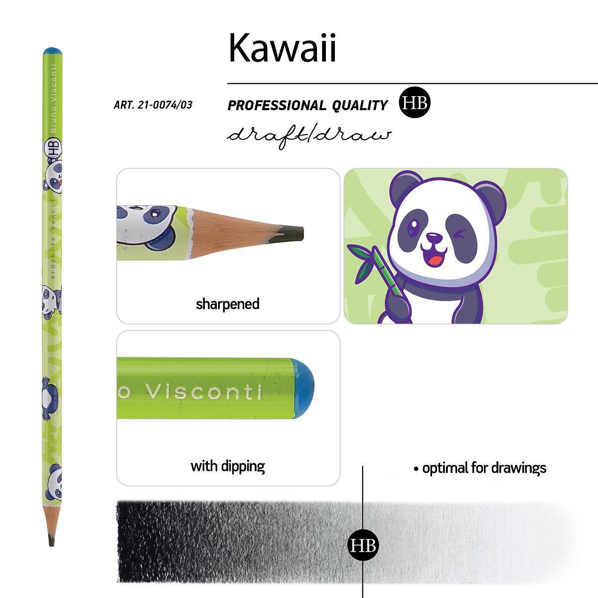 Карандаш ч/г HB «Kawaii Animals. Панда», трехгранный, пластиковый корпус, грифель 3 мм, удобный захват